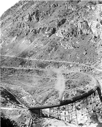 As the ore dwindled, the Georgetown Loop railroad carried more and more excursionists. The fame of the Georgetown Loop with its high trestle was soon nationwide – it was called one of the engineering marvels of the century – and within a few years five trainloads of sightseers a day were riding up and down the valley. At the beginning of the twentieth century prosperity returned to Silver Plume, and other tourist attractions opened to a thriving business. The Argentine Central Railroad, opened in 1906, wound its way from Silver Plume to the top of 13,587-foot Mt. McClellan, affording tourists some of the most spectacular views in the state. From 1906 to 1915 an aerial tramway carried passengers up Sunrise Peak, southwest of the town. Tourism made Silver Plume famous, but the town never again achieved the size and prosperity of its early mining days.